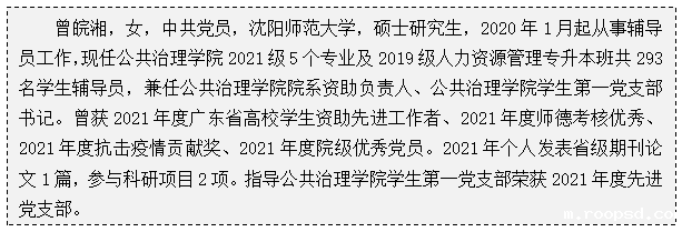 辅导员是开展大学生思想政治教育的骨干力量,是大学生成长成才的人生导师和健康生活的知心朋友。为进一步加强学校辅导员队伍建设,伟德app入口(以下简称我校)开展了2021年度优秀辅导员评选活动,并决定推出优秀辅导员事迹展示活动,充分发挥引领示范和辐射带动作用,以此激励广大辅导员立足岗位,践行初心使命,创新工作理念,推动我校大学生思想政治教育工作高质量发展,以实际行动和优异成绩迎接党的二十大胜利召开。