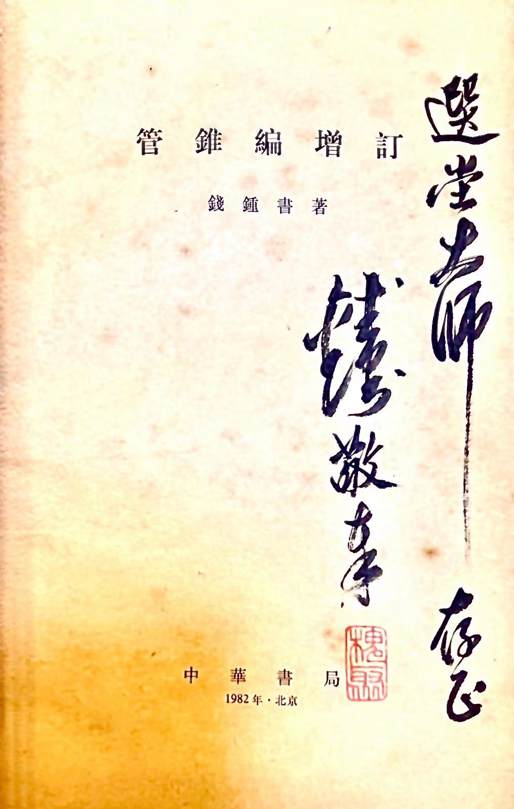 1982年钱锺书将珍藏《管锥编增订》回赠饶宗颐
