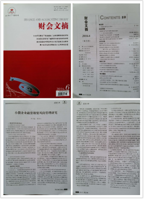 近日,由我校会计学院许子莹同学和陈文川老师联名撰写的《小微企业融资租赁风险管理研究》一文获人大复印资料《财会文摘》2016第6期(双月刊)收录,此次是人大复印资料首次收录由我校在读学生作为第一作者署名的学科论文,喜讯甫一发布,便在师生中引起了热议。