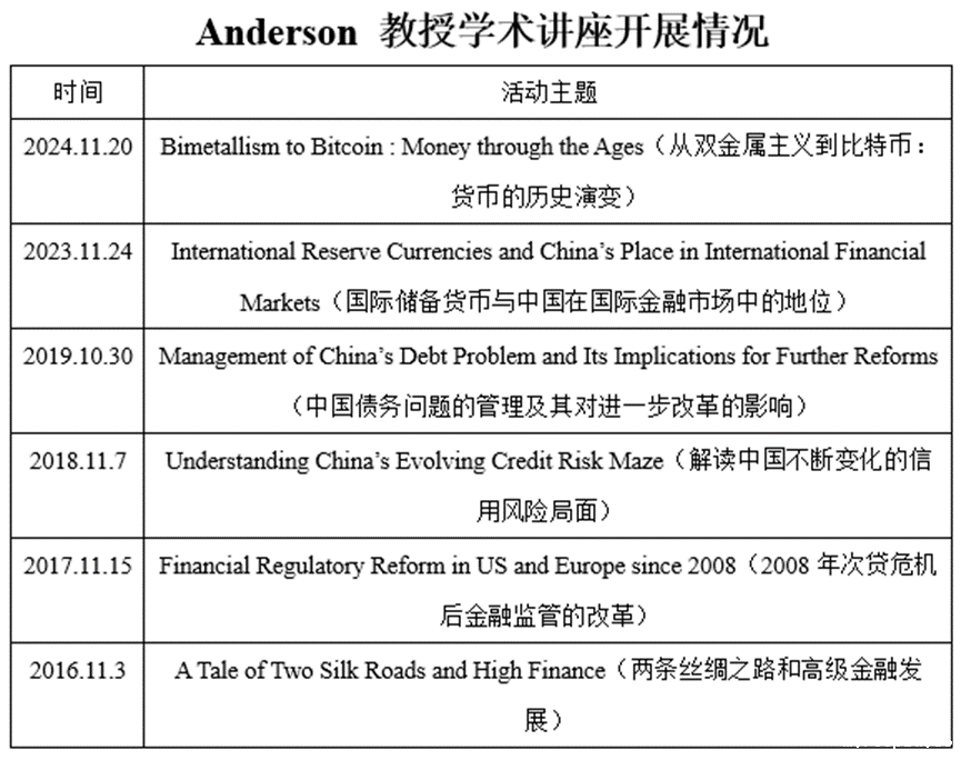 Ronald Anderson教授对学生培养极为重视,秉持理论与实践相结合的理念,鼓励学生参与实际的金融市场研究和案例分析,全方位提升学生实践能力和创新思维。