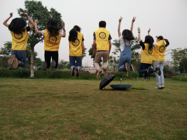 东莞校区的素质拓展活动在素有“最美后花园”美称的华阳湖湿地生态公园内举办,广州校区则在行政楼二楼举行。校园小记者们相聚一堂,在这里进行一场游戏与表演的盛宴,活动的过程中,虽然下了一场小雨,却丝毫没有影响这一群“黄精灵”如火般的热情。