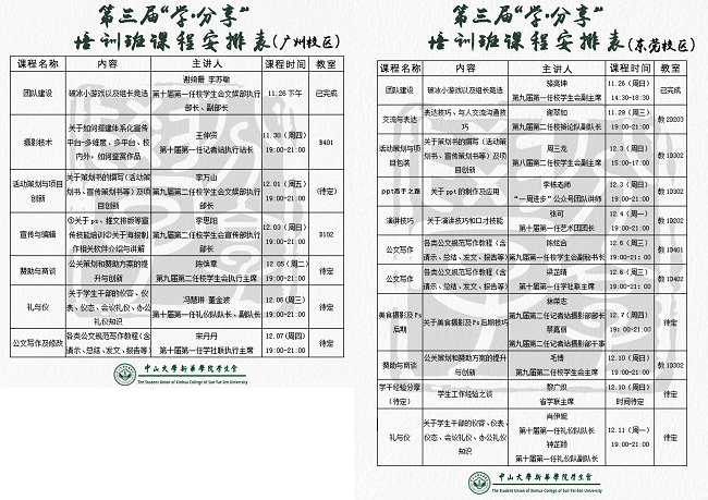第三届“学·分享”学生干部培训班核心在于“学”与“分享”两个词,“学”强调了学生干部们需通过不断学习,提高自身的技能,更好地落实“以同学为本,全心全意为同学服务”的宗旨;“分享”强调学生干部们不能拘束于组织的界限。希望通过这次交流,学生们能共同促进,共同进步,通过资源共享的方式,达到讲师与学员双赢的初衷。