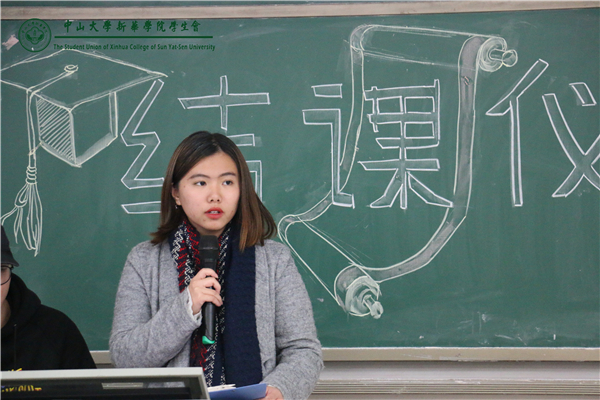 发言中,罗倩雯提到,第三届“学·分享”学生干部培训班在广州、东莞两校区共设有十一门课程,分别是团队建设课程、演讲技巧、活动策划与项目包装、PPT职场高手之路、交流与表达、公文写作、美食摄影与后期技巧、赞助与商谈、礼与仪、摄影技术、宣传与编辑。