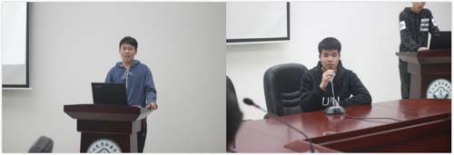读书社代表(左)和爱跑部落代表(右)上台展示