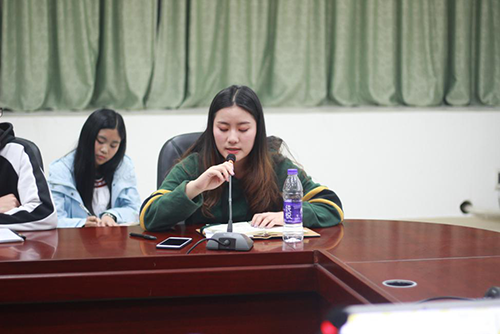 梁芷晴介绍了“四进四信”的具体内容并发表了自己的学习心得。她表示每个大学生都应该有自己的中国梦,而作为学生干部,我们应该学以致用,学习“四进四信”精神,提高自己的政治素养,将其与自己的工作生活相结合,用理论指导实践,在实践中发展其内涵,用行动践行“四进四信”精神,做社会主义核心价值观的青年代言人,立足于自身学习和工作的基础上进一步坚定实现“中国梦”的信念。