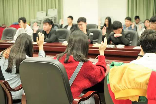 读书社和爱跑部落的代表上台对各自的社团进行介绍,由理事会投票表决是否通过并成为正式注册的学生社团。
