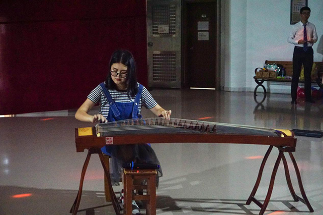 舞会上,校艺术团刘雁同学带来古筝表演《琵琶语》,只见她低眉信手续续弹,说尽心中无限事,她娴熟地拨弄着琴弦,那动人琴音余音绕梁,让人在灯光摇曳中深深陶醉。