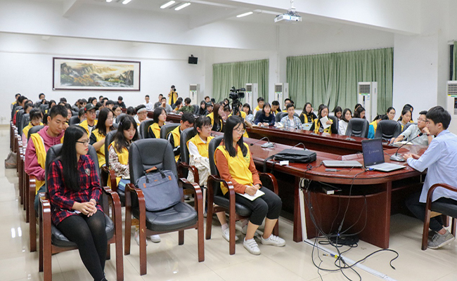 本次分享会由编辑部陈乐主持。与会嘉宾有记者站指导老师李波,第七届记者站站长黎佩欣。记者站站长团、部长团及各部门干事以及校团委、会计学院记者分站、中文系记者分站、外国语学院记者分站的同学到场学习。