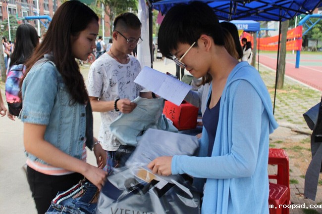 2015年4月21日,服装协会爱心义卖牛仔裤正式在东莞校区篮球场进行售卖。协会同学将摊位布置整齐,并做好宣讲本次活动的内容与意义所在。此次的爱心活动得到了同学们以及老师的大力支持,院团委学生素质发展与学生艺术中心副主任帅莉,财务与会计系主任助理杨和茂以及学社联主席林世聪纷纷用实际行动为贫困的学子献出了属于自己的一份爱心。在义卖销售过程中,服协的干事们积极为购买的同学进行导购,细心的举动也温暖了购买牛仔裤的同学。