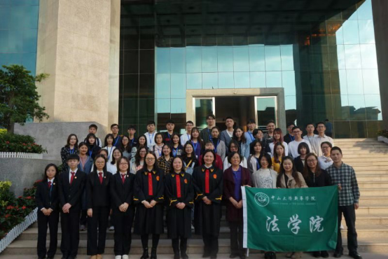 为进一步加强院校合作,推进法学人才培养,提高学生的法律实践能力,1月7日下午,法学院党总支书记、副院长李岚教授,副院长叶秀、党总支副书记谢广桓,教务秘书刘旖旎和2018级辅导员杨紫博等教师带领17名学生前往深圳市龙岗区人民法院第八审判庭,现场观摩了一起刑事案件的庭审活动。庭审过程中,同学们充分联系法学专业的理论知识进行现场教学与学习,深受启发。