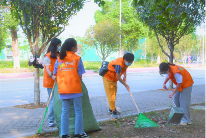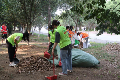 下午的太阳十分热烈,却挡不住师生们的热情。大家不怕苦、不怕累、不怕脏,分工明确,配合默契,互相帮助,或拿起垃圾铲,或提着垃圾袋,或挥起树叶耙……师生们卫生躬行,环保践履,在劳动中接受教育,在服务中升华爱家爱校的情怀。