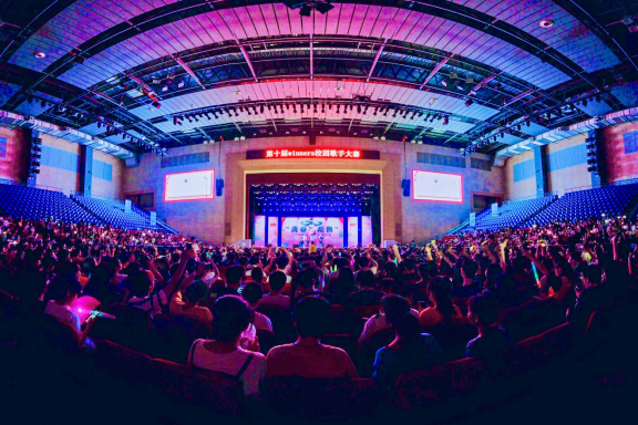 大赛现场除却选手们的精彩纷呈的表演,位于舞台两侧的宣传屏幕上的实时弹幕同样令观众目不暇接。一条条滚动的弹幕充分表达了现场观众的热情与心声。除此之外,本次大赛还设置了现场抽奖环节,实时弹幕和抽奖环节一度让大赛现场的气氛高潮迭起。