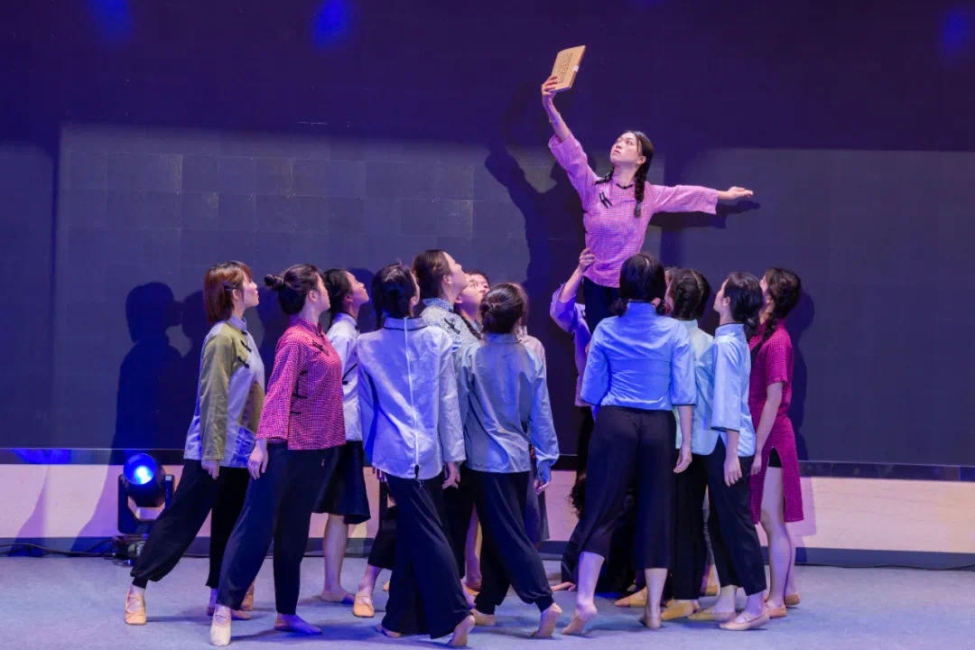 艺术团的宗旨。此次民舞队演出剧目《书的流离》在各方支持与配合下,由学校团委李琴老师具体负责制定排练计划,校艺术团梁捷老师提供专业技术指导。民舞队积极参与,在音乐和舞蹈中掀起艺术与百年党史的热潮,同学们充分利用课余时间练习,经过严格训练排练,《书的流离》的展演得到了观众们的一致好评。