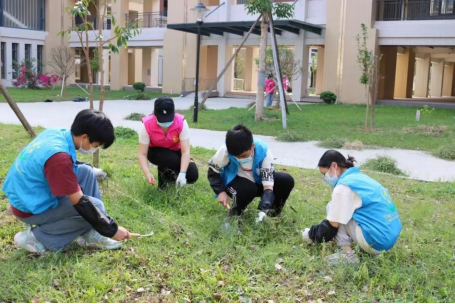 志愿服务源于心,奉献爱心在于行。在美化校园行动中,随处可见手持劳动工具如火如荼投身于劳动的志愿者,他们用汗水与辛劳给校园一个整洁的容貌。教学区的绿化带旁,是拿着簸箕和扫帚认真清扫落叶、共同完成地面垃圾清运工作的志愿者;校园里的单车停放区中,是戴着手套细心将单车摆放整齐的志愿者;校道边的草坪上,是拿着镰刀小心翼翼在除草的志愿者。美化校园行动与劳动教育相结合起到了以劳树德、以劳强体、以劳怡情的良好效果,强化了同学们热爱劳动的观念,增强同学们积极参与劳动的意识,营造了美化