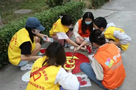志愿者给校园美化涂鸦