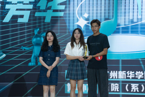 欧阳曦老师(左一)为校园十佳歌手颁奖