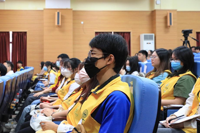 曾俊豪为学生记者们展示了出镜记者的现场报道的技巧,并进一步剖析实训,针对思维与语言能力的培养需求,为校媒记者提供了详细的训练方法。