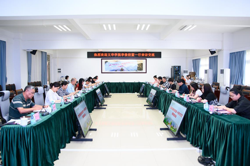 李俊对我校的热情接待表示衷心感谢。她简要介绍了文华学院的办学概况,分享了文华学院在发展过程中的经验做法,并诚挚邀请我校回访文华学院。