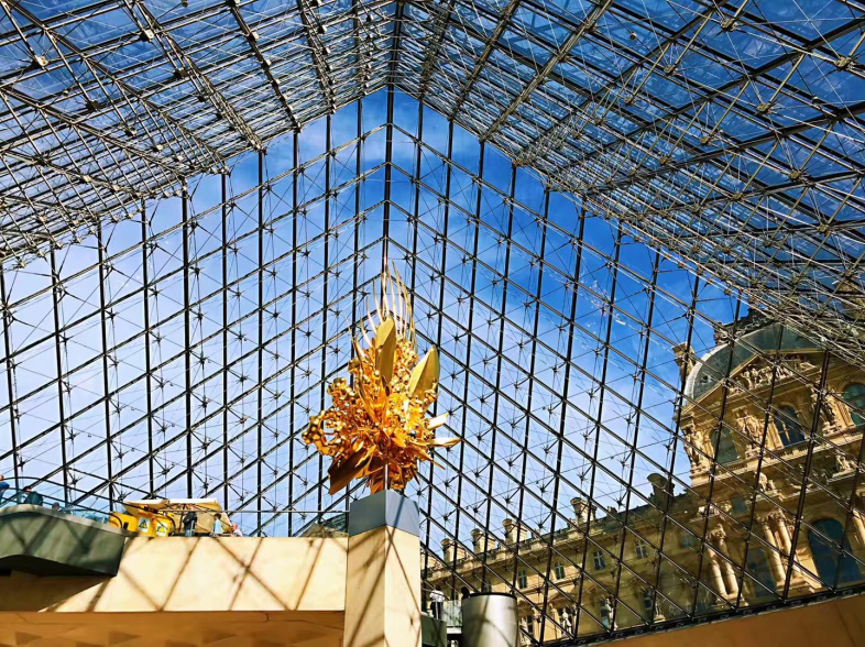 两位老师带领同学们游览了充满艺术气息的卢浮宫(Musée du Louvre),给同学们细致的讲解了若干个具有代表性的艺术作品,每一个作品都体现了作者宏达的思想和创作的耐心。其中LV基金会大楼极有特色,基金会大楼是由美国建筑师FrankGehry应BernardArnault的委托而设计,是21世纪标志性建筑成就之一。基金会大楼内设有专门展出永久收藏品、短期展品和艺术家委托展品的展览厅,以及用于多学科演出和活动的多功能礼堂。