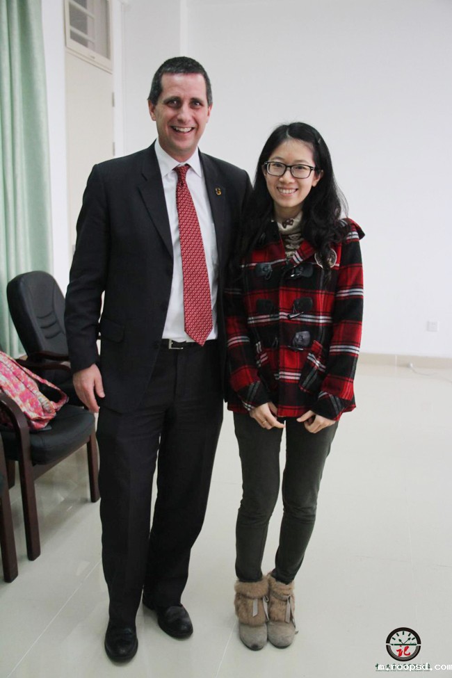 Brian博士谈到进入大学首先你必须清楚你需要做什么和你要的是什么。Brian博士强调,国外与国内学习最大的区别在于自由度,在国外,生活学习都要靠自己把握,要勇于表现自己。有问题要保持自信的态度大胆问,并积极寻求解决困难的途径。然后自己必须要有一个清楚的规划,在索尔兹伯里大学,学生可自由选择科目学习,教授也表示,在半年留学生活结束后,学分转换以及社会实践都不是问题。最后还让以前前往索尔兹伯里大学进行“3+1”留学的11级学子录下他们想说的话给他们曾经的导师。