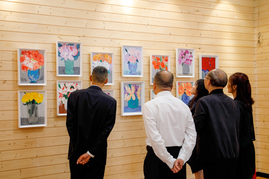 我校校长助理刘婉莉(霖霖)陪同许润成副部长一行在霖霖书院观赏画展作品,并对不同系列作品作了详细介绍。许润成副部长一行参观后对霖霖书院举办画展的成功举办表示祝贺,并对展出作品的艺术性给予了高度评价。