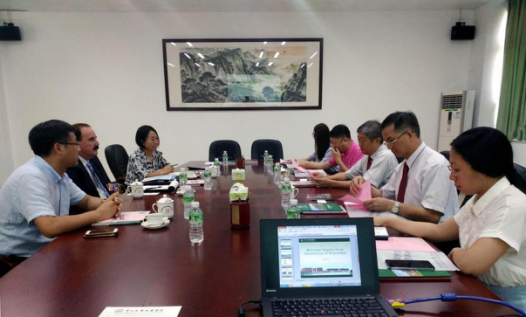 Mark Kornbluh院长介绍了肯塔基大学的基本情况及其特色的专业,尤其是美国文化与商务实践、创意写作、写作与数码、外国文学、应用语音学、西班牙语、商务英语、地理信息系统等。Mark Kornbluh院长认为2+2项目、3+X项目对学生具有较强的吸引力,肯塔基大学自2010年就与中国高校合作2+2项目、3+X项目,具有较为成熟的学分互认机制,方便我校与其课程的对接。希望双方借此契机建立友好关系,争取尽快签订合作意向书,落实合作项目,尽快确认并推进2+2和3+X项目的专业合作。