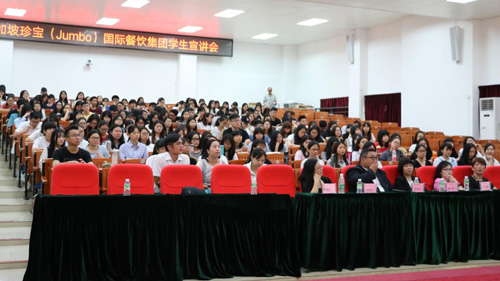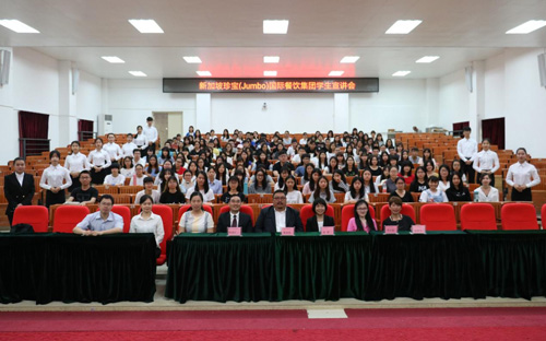 5月3日,新加坡珍宝国际餐饮集团实习宣讲会在我校东莞校区举行。管理学院李美云副院长、利尚仁博士,新加坡珍宝集团执行董事黄翠芳、中国区总裁黄剑亮、中国区人力资源经理李石磊,新加坡凯日集团总裁赵莉出席,旅游管理专业师生共同参与。