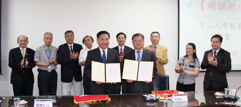 2014年6月24日,由王庭槐校长率领的学院代表团(副校长杨卫华、校长助理江沛、行政人事部部长丁艮平、财务工作部部长张华英、实验与信息管理部部长李伟林、学生工作部部长林秋贵、学科建设与合作交流部副部长李小梅、学科建设与合作交流部部长助理刘婉莉和行政人事部部长助理蔡舒钏)访问了台湾中山医学大学,受到了医学大学董事长周明仁教授,赖德仁校长,周明勇、周明智董事,中山医学大学附设医院总院长吕克桓博士等15位领导的热情欢迎。上午9点,在台湾中山医学大学正心楼1313会议室,校长赖德仁首先致欢迎辞并介绍了中山医学大学参会人员。王庭槐校长致辞并介绍了学院代表团全体成员。周明仁董事长致辞并介绍了中山医学大学创校沿革、机构设置及董事会的运行情况。赖德仁校长与王庭槐校长共同签署了“学术合作备忘录”,双方领导互赠礼品。上午10点,各对口单位的代表与代表团成员进行了交流。翁国昌院长介绍了各医学系概况及发展;周明勇董事介绍了牙医学院各系及系所的发展。健康管理学院院长黄怡嘉、医学人文学院院长白佳原、医学科技学院院长王祖兴等分别介绍了各学院概况。教务处邱慧玲教务长、研发处刘宏信研发长、国际事务暨校友服务处蔡淦仁国际长等介绍了各部门的概况。代表团与中山医学大学同行在师资培养、学生交换等方面的探讨取得了成果,在机构建设、管理理念等方面也进行了广泛的探讨。同时,代表团还与中山医学大学的领导在多项议题上进行了综合讨论交流。