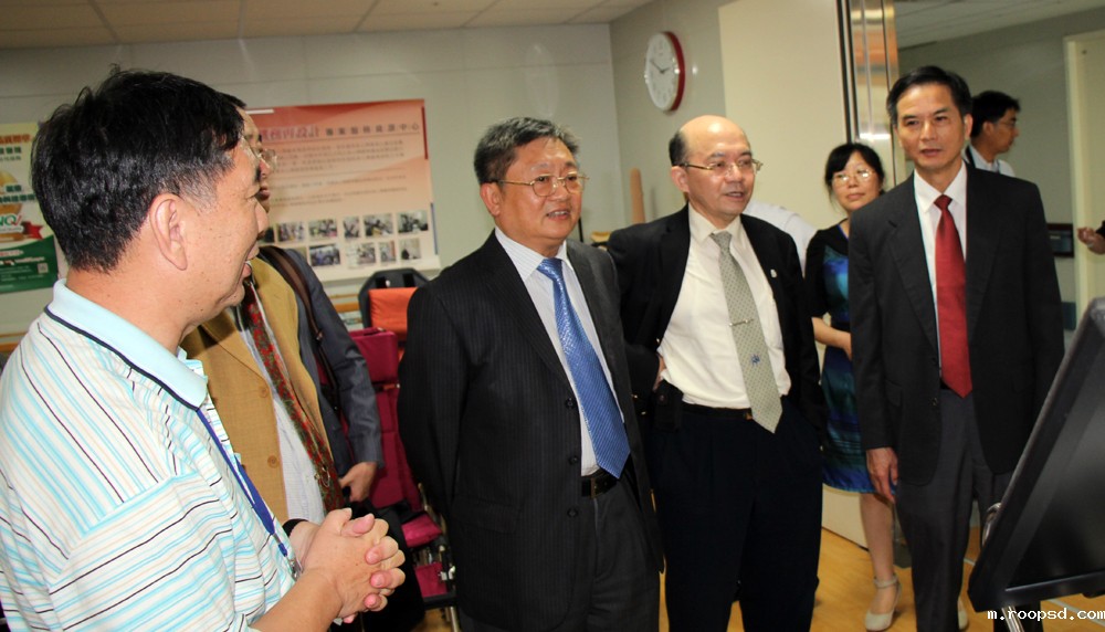 下午,代表团在中山医学大学附设医院总院长吕克桓博士、医院公关主任谢金琅等领导带领下,参观了汝川大楼1、2、15楼,并在16楼观摩了走动学习——复健物理治疗室、语言治疗室、职能治疗室、义肢室、辅助中心的运行情况,还参观了核医学大楼医学影像放射学科、核子医学科、中子中心、放射肿瘤科等。