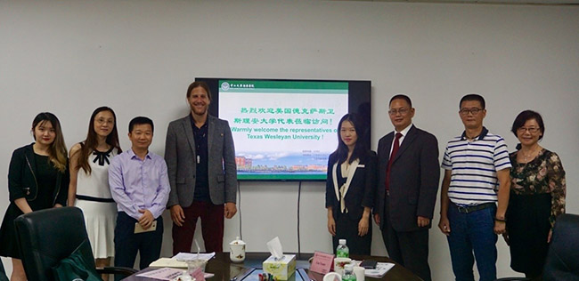 9月29日,美国德克萨斯卫斯理安大学(Texas Wesleyan University)国际部主任Andy Harris博士一行來访我校洽谈合作,我校校长助理刘婉莉、会计学院院长刘运国、会计学院常务副院长林源、外事处副处长邱易安等领导会见来宾。
