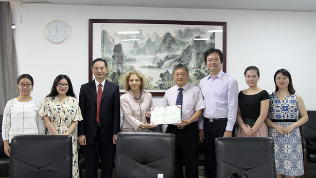 王庭槐校长会见来宾,并代表学校敦聘Ms. Edda Silvestri院长为音乐学专业学科带头人。