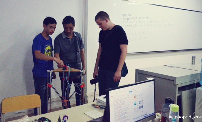 我院实验与信息管理部李伟林部长及胡铁君教授陪同来宾参观。李部长表示,我们做为创客成员一份子,很期待与世界各地创客们进行思想碰撞、交流与合作。胡教授则为各位创客们做总体介绍,提出我们如今实行的“跨学科创意”公选课的概念,通过这个课程,将技术与艺术专业相结合,将创意与实践相结合。在此过程中,学校提供资源,学生提供创意,两者结合,推动了各项创意项目的实现。