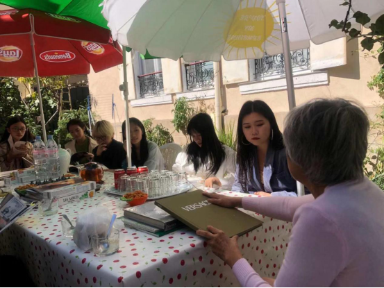 热情的卢静波女士为了让同学们体验一下法国当地人的生活,早早和先生一起准备好了自家种的水果。同学们边欣赏法国的美景、品尝卢女士亲手准备的美食,边听卢静波女士讲述她在时装行业的工作经历。