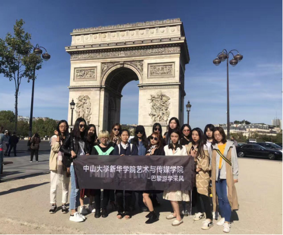 艺术设计与传媒学院师生一行人到达巴黎并在巴黎凯旋门合影