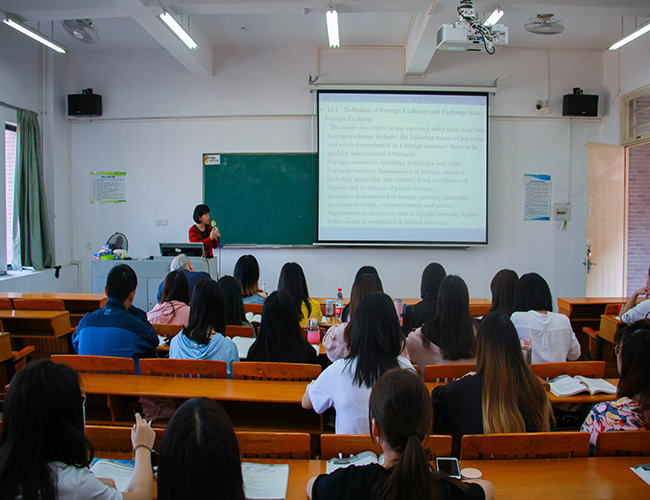 本次授课以两种形式展开。首先是曾晓华老师为16级金融B班的学生讲授“国际金融中的外汇汇率--Foreign Exchange Rate”一课。接着由Ron Anderson教授讲授了“金融英语”课程,主要从国际金融中的外汇和外汇汇率两方面展开。Ron Anderson教授指出,外汇的供给如果大于需求,那么外汇做为一种“特殊资产”,外汇汇率会上涨,即外汇升值,反之亦然。Ron Anderson教授还说道,国际外汇市场既有“批发”(wholesale)市场,也有“零售”(retail)市场。