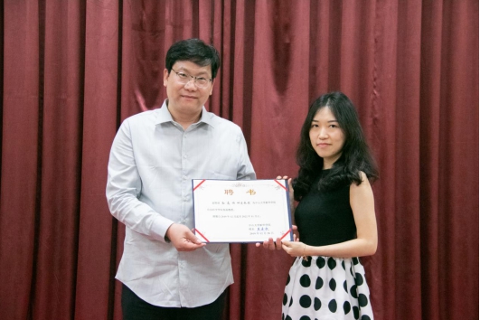 学院举行仪式敦聘美国麻省理工学院教授、美国Abitech公司总裁孙友顺博士为信息科学学院客座教授,刘婉莉校长助理为孙友顺博士颁发聘书。