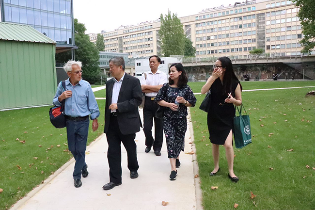 首先,Rudler教授带领王校长一行参观了巴黎第六大学。他向王校长等人介绍道,巴黎第六大学是巴黎大学科学学院的主要继承者,也是现在法国最大的科学和医学集合体,在许多领域都处于顶尖水平,被多项世界排名评为法国第一和世界顶尖大学。2014年世界大学学术排名(ARWU)将巴黎六大评为法国第1、欧洲第6,全球第35。在2016年的排名中,巴黎六大跃居世界第25,数学领域位于全球第4(仅次于普林斯顿、哈佛、加州伯克利、麻省理工),物理领域全球第25,自然科学领域全球14,工程、信息等理工科领域全球32。在2015年自然指数(Nature Index)排名中,巴黎六大被评为全球第5大研究型大学,世界十强科研机构。巴黎第六大学还是欧洲研究型大学联盟和索邦大学联盟成员,拥有超过125个实验室,其中绝大部分都和法国国家科学研究中心合作。巴黎科学学院名誉校长马克·扎曼斯基(Marc Zamansky)将巴黎第六大学比喻为“在巴黎中心科学思想的结晶”。