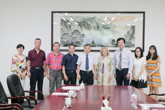 学院(以下简称我校)音乐学专业学科带头人Edda Silvestri教授应王庭槐校长邀请再次来访我校,为深化两校国际艺术教育合作交流作出努力。我校王庭槐校长,音乐系田丁副主任,学术顾问杨健生教授,艺术设计与传媒学院蔡照波院长、周国屏副院长,外事处吴俊欧副处长等接待来宾。