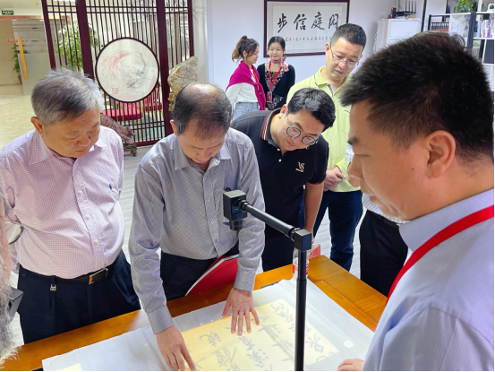 我校王庭槐校长(左)和蔡照波院长(中)一行体验数字临摹台