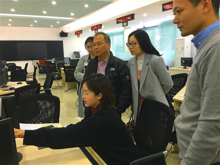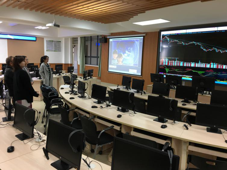 上午9点,胡永泰教授在外事处人员的陪同下参观我校东莞校区,随后由经济与贸易学院潘怡吉老师、林婧老师带领,分别参观了税务稽查与纳税评估实验室、办税与出口退税实训室、金融衍生品实验室、银行实验室、经济学沙盘综合实验室、经贸实验教学研讨室暨商务谈判实训室及国际贸易仿真实训室。胡教授在参观过程中连连夸赞我校经贸学院探索求真、融理论与实践为一体的教学体系及水准一流的实验室配备。