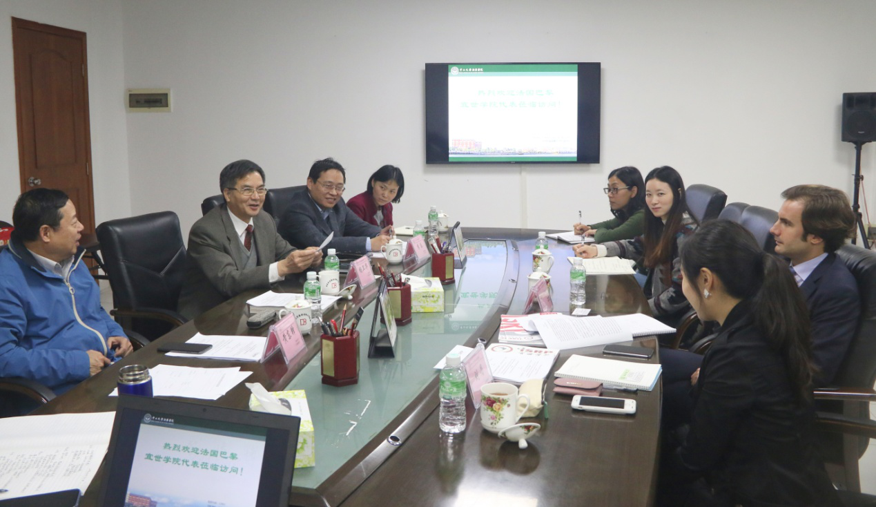 法国巴黎精神运动康复学院国际项目负责人Mark Soubiran博士、中国项目负责人刘丹女士于2月28日下午第三次来访我校洽谈教育合作项目,我校副校长杨卫华教授、康复医学系主任黄东锋教授、康复医学系逸仙康复班班主任李乐教授等教师代表会见来宾,外事处、康复医学系教师代表参与座谈。