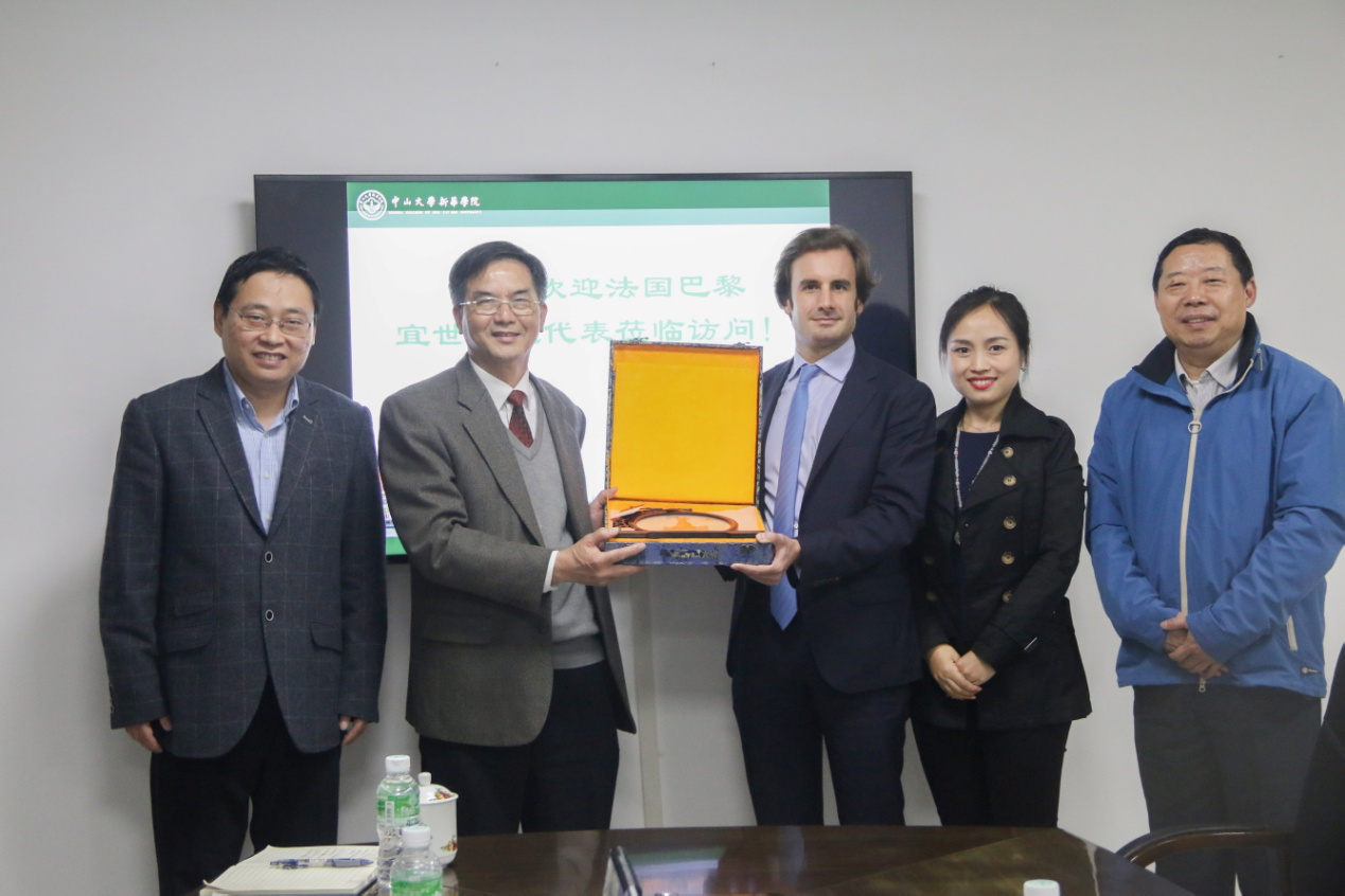 杨卫华副校长(左二)为Mark Soubiran博士(左三)赠送纪念品