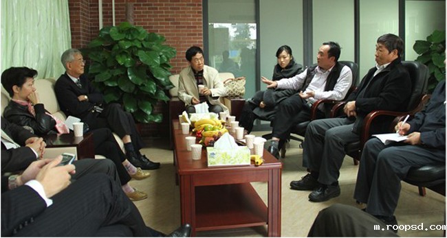 图1 我院刘荣海董事长向来访客人介绍学院发展情况