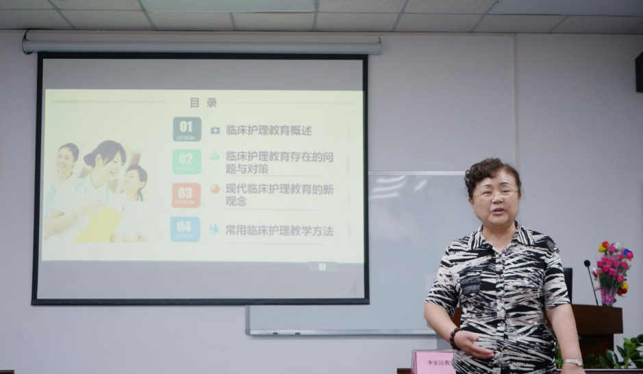 我校护理学院名誉院长李亚洁教授以《临床护理教育的几点思考》为主题作报告