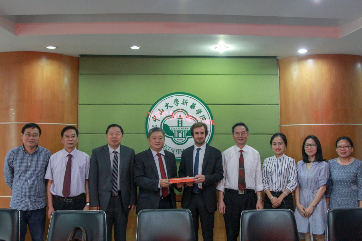 王庭槐校长(中)对法国巴黎宜世学院代表的来访表示欢迎