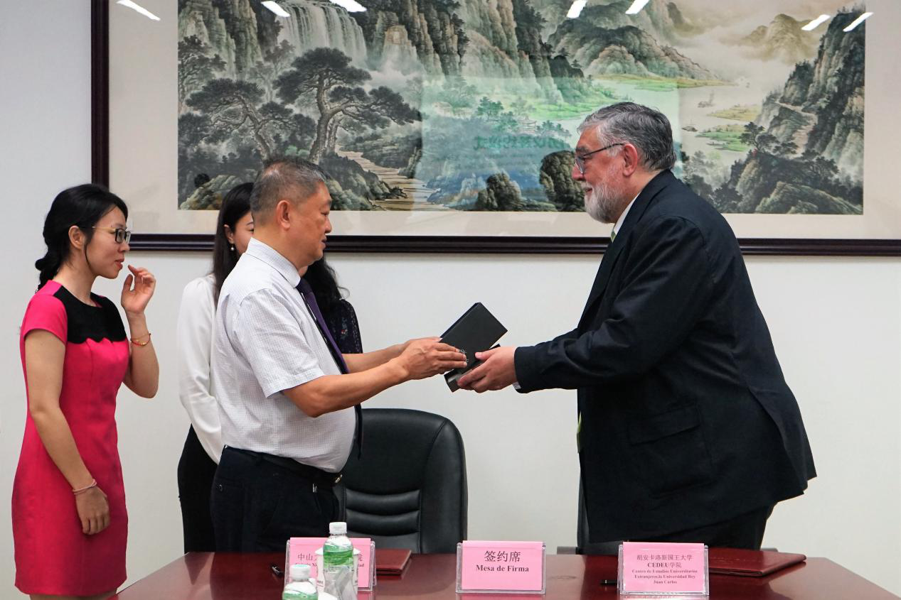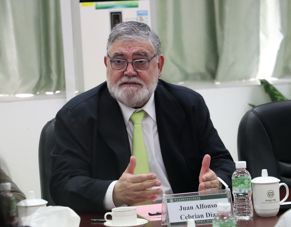 王庭槐热情欢迎Alfonso Cebrián校长一行的到来,并向来宾介绍了中山大学