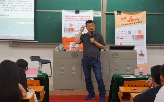 读书社联合承办的“作家进校园”之“趣谈三国,且看司马”讲座在东莞校区举行。讲座特邀昆士兰大学客座教授,北京师范大学金融系博士、著名作家、翻译家,美中关系协会(National Committee on United States-China Relations)会员、美国商业评论撰稿人、哈佛大学访问学者张朝炬教授主讲。