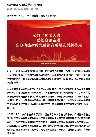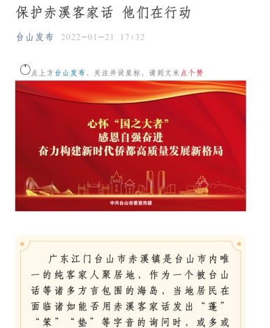 人民日报文章链接:《保护赤溪客家话,他们在行动》