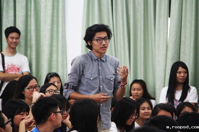 在提问环节中,大家踊跃发言。其中在回答如何做到为我们带来欢乐而不是泪水的讲座时,他表示他是一个演讲者,要把最好的一面呈现给大家,并希望用这种方式影响在座的同学。