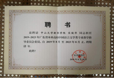 学院中国语言文学系主任宋俊华教授受聘为广东省本科高校中国语言文学类专业教学指导委员会委员,并代表我校受邀出席了该论坛。